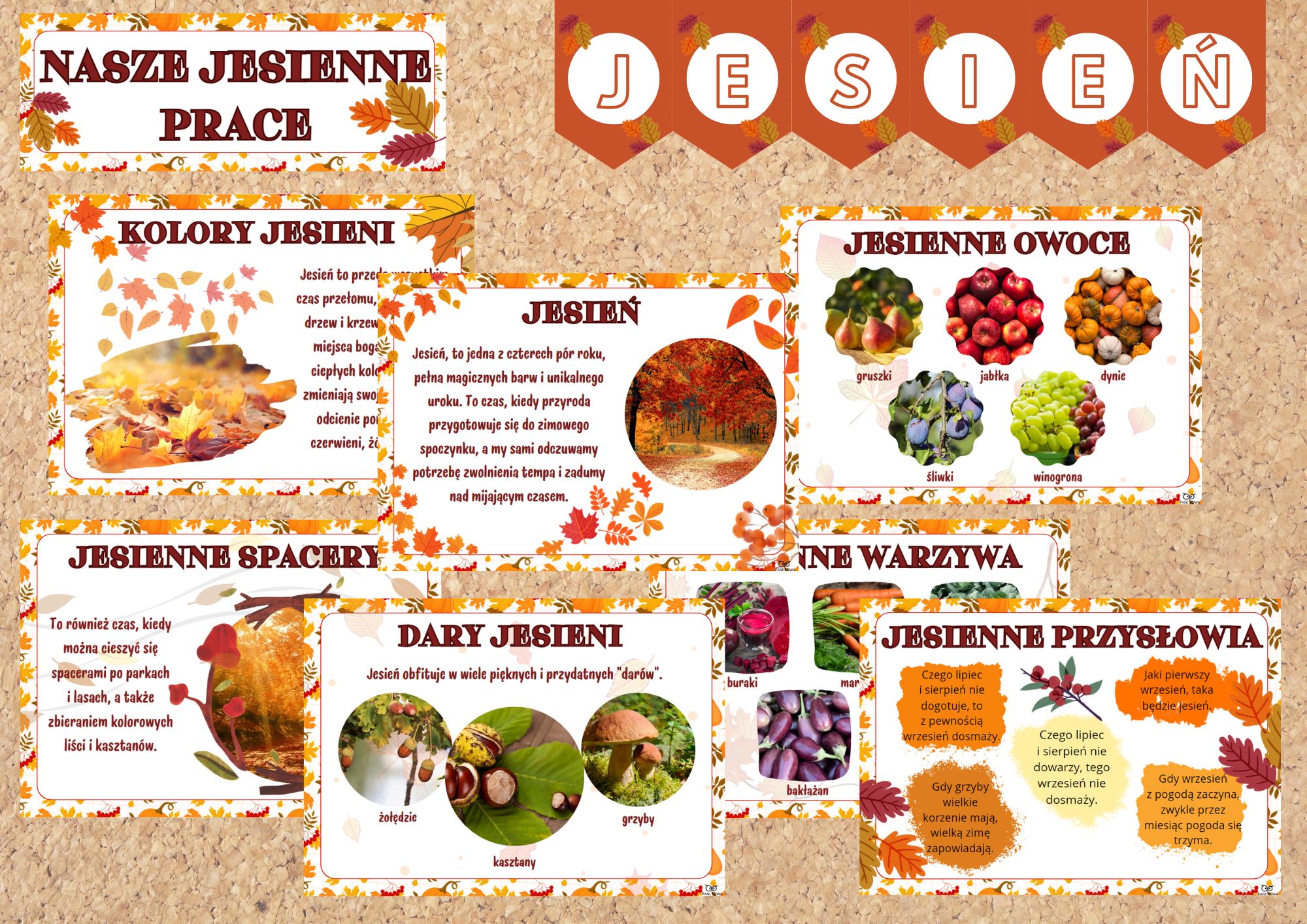 🍂 tablice: „NASZE JESIENNE PRACE” oraz „NASZE PRACE PLASTYCZNE” z pasującym motywem